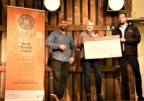 - Gnisten – Musikværket Ry er et dynamisk og levende sted, der bidrager til fællesskab og unikke kulturelle oplevelser i lokalområdet. Derfor er vi i Sparekassen Kronjyllands Ry-afdeling glade for at kunne støtte det gode initiativ med en donation på 22.500 kroner til en projektor og en lydmixer. Vi er overbeviste om, at donationen vil bidrage til at skabe endnu bedre rammer for kulturen og fællesskabet i Ry – det er især tiltrængt i denne tid, hvor corona har lagt et ekstra stort pres på de kulturelle tilbud, siger Rasmus Vammen Birk.